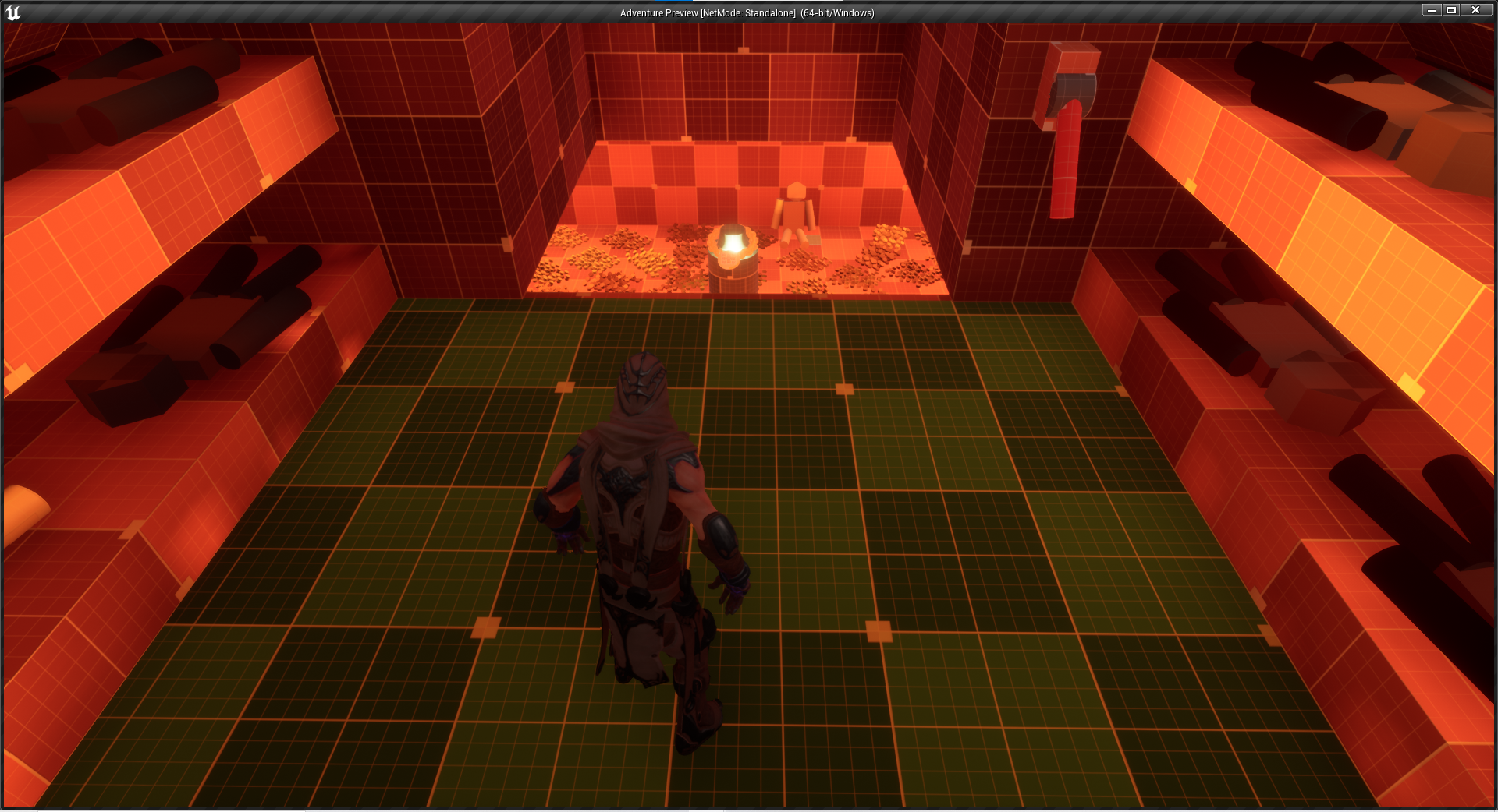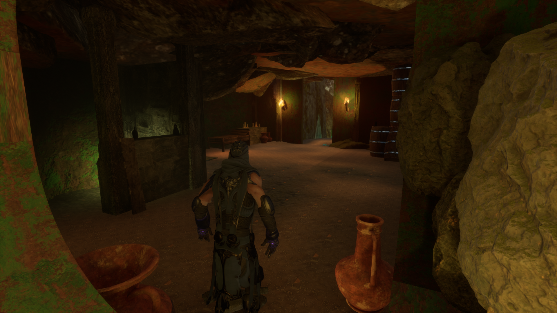This project was to showcase our skills learned in Level Design and to further develop our level design skills. For this project I was tasked with designing a level for a 3D platformer and was given a game design document to review before creating this level. I began by creating a basic blockmesh level and playtesting it thoroughly to iron out any misaligned meshes, long/short jumps, and various other issues that hindered the levels flow. After creating my first blockmesh level iteration, I added multiple gates, valves, chests, and collectibles to increase the amount of player interactions and increase player engagement within specific points in my level. I set most gates and valves up by using timelines that trigger upon interaction and adjusting the curve to create a more impactful animation. To further increase the immersion I added some minute interactive details like letters to help pull the player into the story and create more environmental story telling. To increase the impact of my valves and gates I also added cinematic cutscenes with camera shake to show the force of the cave collapsing in and the friction of the rock doorway sliding open.