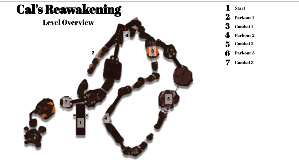 The level starts with players spawning in a jail cell, serving as Cal’s reawakening point. Given the necessity to teach core mechanics, the initial section focuses on introducing fundamental actions like movement and jumping.