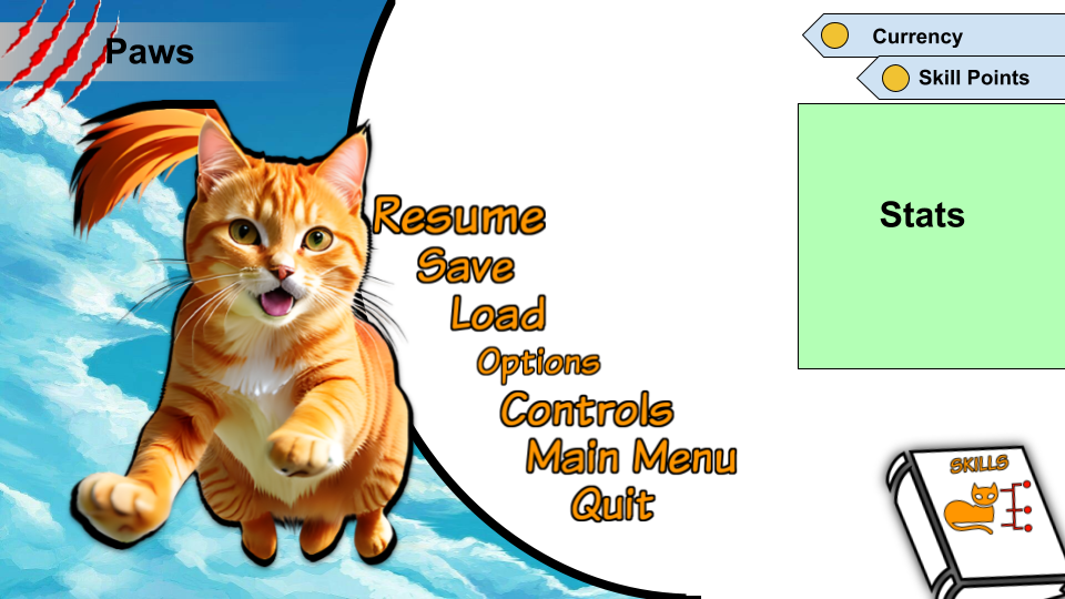 The month prior Mr. Whiskers owner found out that he broke her favorite vase. To stop you from doing this again she has blocked off rooms and locked doors. To gain access back into these rooms players will have to keep order within the house and defend it from hordes of rats and other enemies while their owner is at work all day. Every 4 successfully defended days Mr. Whiskers owner will grant him access to a new room in the house. Before unlocking a new room players must triumph in a boss fight. With every boss fight adding new enemies with unique attacks and stats, players must adapt their playstyles to overcome their foes. To allow a more personalized player experience players will earn 1 skill point every 2 days and can earn extras as they achieve specific daily tasks. Players can spend their skill points in the skill tree section of the menu where it is broken up into 3 unique categories (Attack, Defense, and Speed).